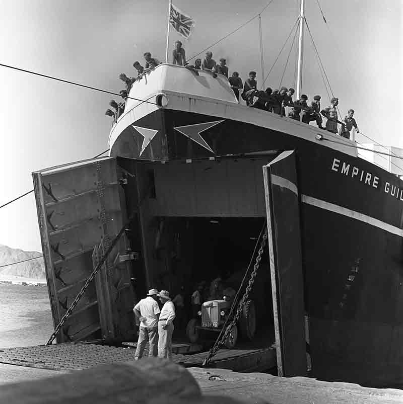 6th Royal Tank Regiment disembarks HMS PUNCHER at Port Said, Imperial War Museum.