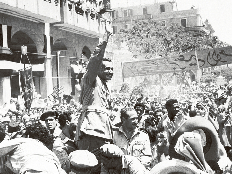 Nasser on route to raise flag over Navy House, 18 June 1956, Gulf News.