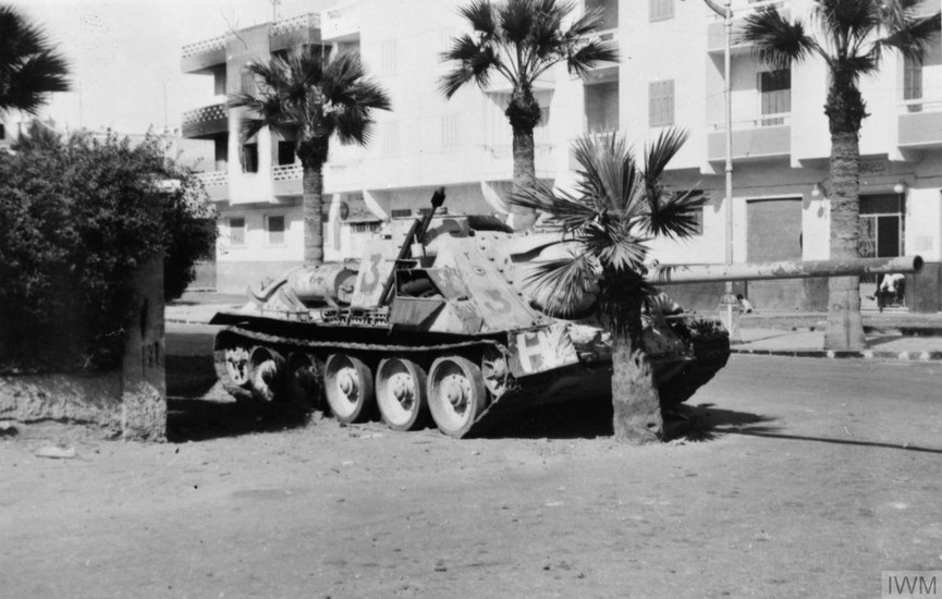 Russian SU-100 tank that Egypt used against British forces at El Gamil Airfield, Imperial War Museum.