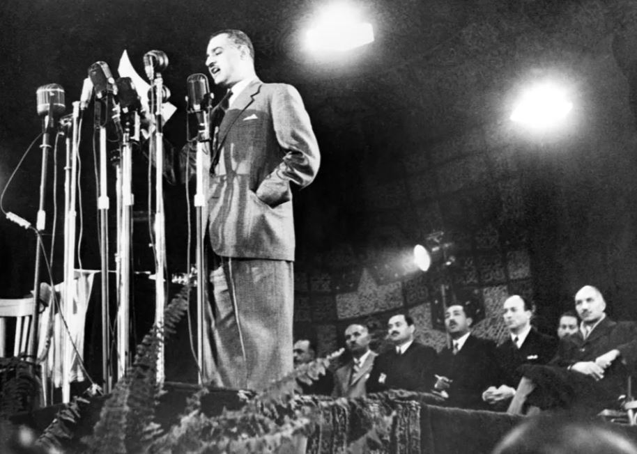 Recenently elected President of the United Arab Republic Gamal Abdel Nasser speaking at Republic Square, Cairo, 22 February 1958, The Times of Israel.