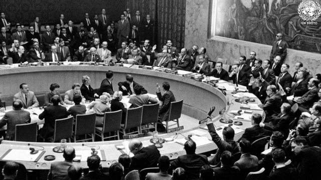 UN General Assembly debating the Suez Canal Crisis, 8 October 1956, UN Audiovisual Library.